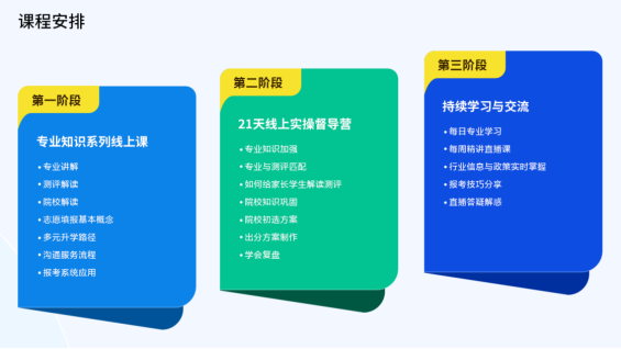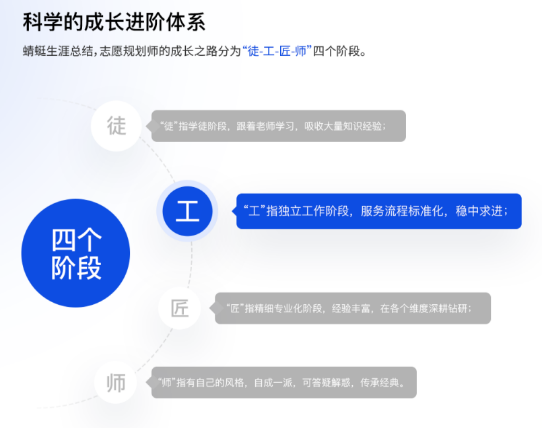 成“工”之路就是通过系列课程,帮助老师们深入浅出地详解高考志愿规划各种理论知识,陪伴老师从专业简介直到报考演练结束,让各位老师学习后可以独当一面,拥有独立招生、沟通和出方案的能力。